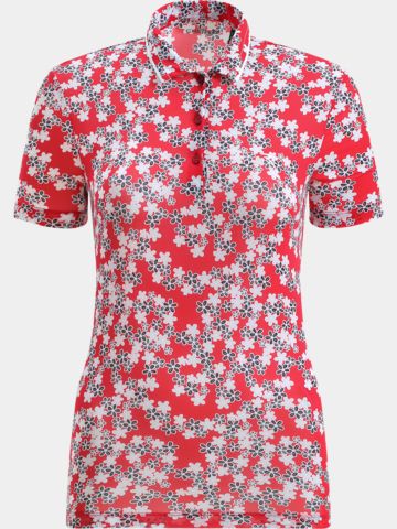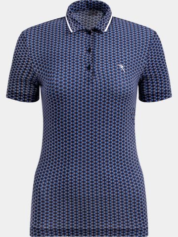 Damen-Poloshirt aus Dry-Matic-Stretch-Jersey mit dem eleganten Allover-Muster „Fancy Box“. Das leichte und besonders weiche Material sorgt für optimalen Tragekomfort bei warmen Temperaturen auf dem Golfplatz. Die effektive Anti-UVA- und UVB-Ausrüstung schützt zuverlässig vor schädlichen Sonnenstrahlen, während das innovative Garn schnelles Trocknen garantiert. Der Kragen mit sartorialem Einsatz in Kontrastfarbe und feinen, schneiderähnlichen Steppungen sowie der geformte Saum verleihen dem Shirt eine stilvolle und feminine Note – perfekt für anspruchsvolle Golferinnen.