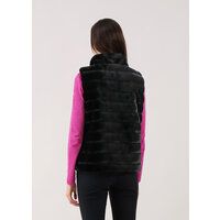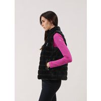 Pro-Therm® Wendeweste: auf der einen Seite eleganter und edler Kunstpelz in gesteppter Optik, dank der Verarbeitung mit horizontalen Rippen. Die andere Seite, etwas schlichter, ist aus Nylon mit winddichter Funktion. Leicht ausgestellter Schnitt und lockere Passform. Dadurch, dass sie einfarbig gehalten ist, passt sie gut zu jedem Outfit. Praktisch und vielseitig, dank der insgesamt vier Taschen mit Reißverschluss. Farblich passender Patch und Logostickerei.