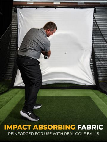 Genießen Sie das ultimative Indoor-Simulationserlebnis, indem Sie erstklassige Golfsimulator-Software auf diesen hochwertigen Impact Screen projizieren. Verwenden Sie die 20 Bugge-Schnüre, um die perfekte Spannung im Bildschirm zu erzielen.